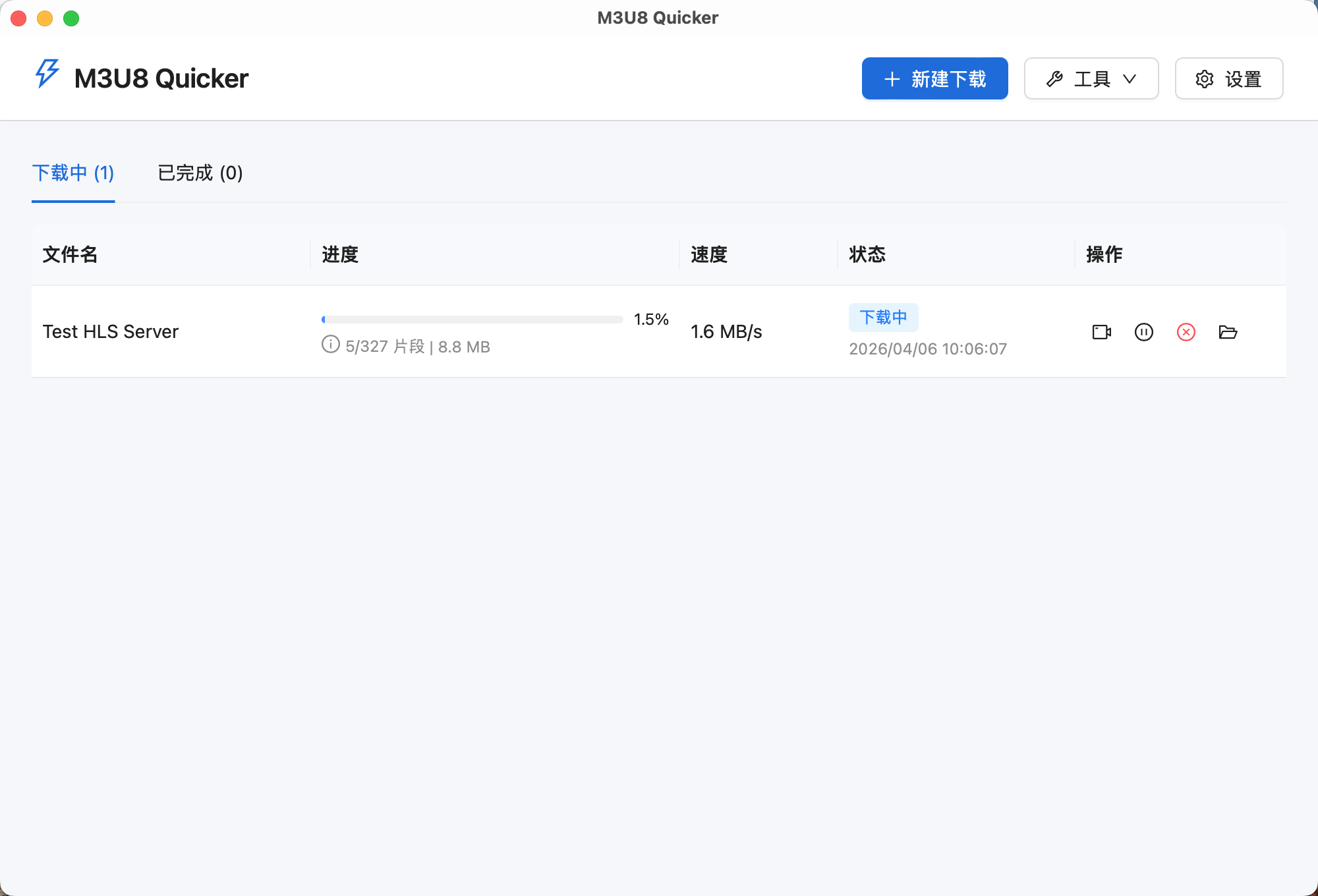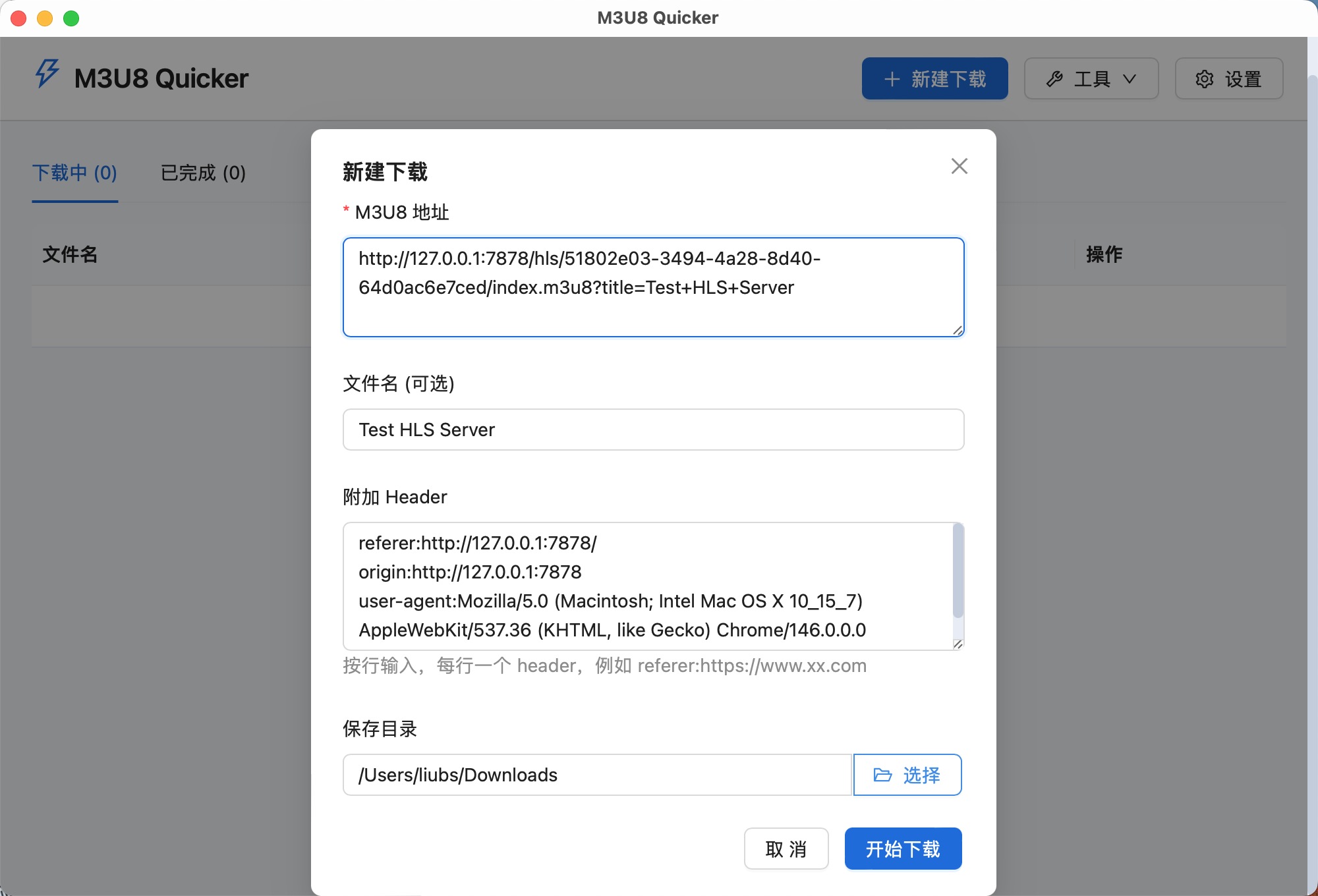 使用 M3U8 Quicker 的过程非常直接。打开应用后,点击“新建下载”,输入 M3U8 地址即可创建任务。如果资源依赖 referer、origin 等附加请求头,也可以在创建任务时一并补充。