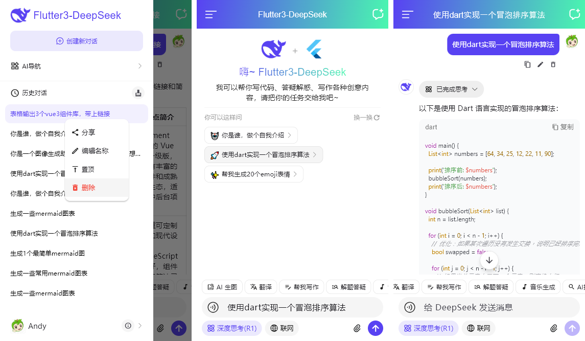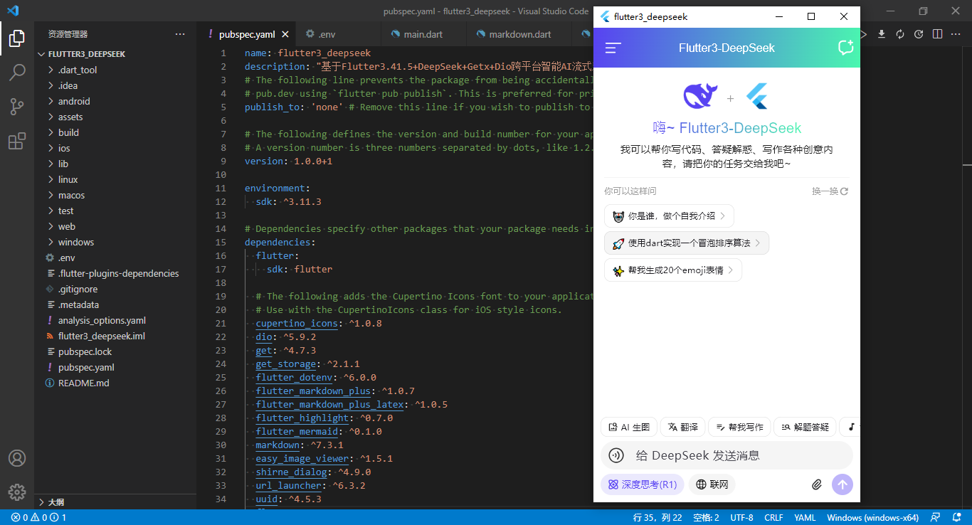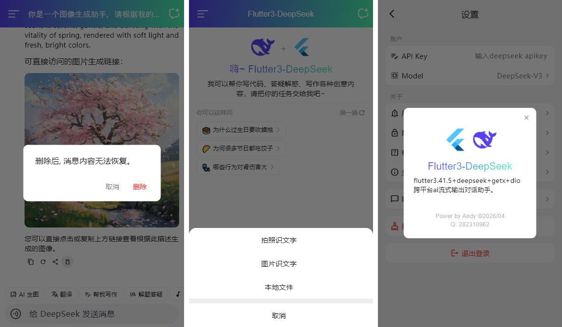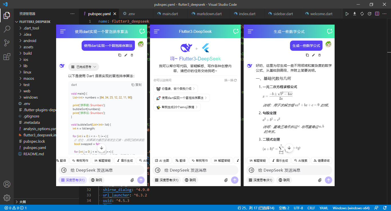 使用最新跨平台技术Flutter3.41.5搭建项目,调用DeepSeek-Chat对话大模型。