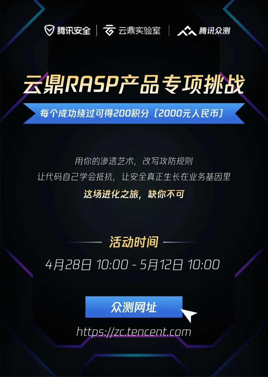 我们精心打造的云鼎RASP已就绪,诚邀您以攻击者视角,突破层层防护机制,验证安全边界的极致;通过构造奇特攻击载荷,挑战运行时防御的智能阈值。
