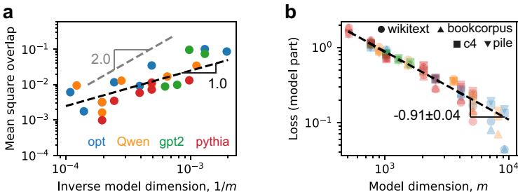 在LLM的隐藏空间里,也藏着这样一套“高效收纳逻辑”——表征叠加(representation superposition)。它能让模型在有限的维度里,表征远超维度数量的tokens和抽象概念,就像把更多物品通过精准堆叠放进固定收纳柜。以往研究要么忽视这套机制,要么只触及“弱叠加”的皮毛,而这篇论文首次证实:LLM真正运行在“强叠加” regime,正是这种机制让缩放律摆脱了数据分布的束缚,实现了稳健的1/m(模型维度)损失衰减。
