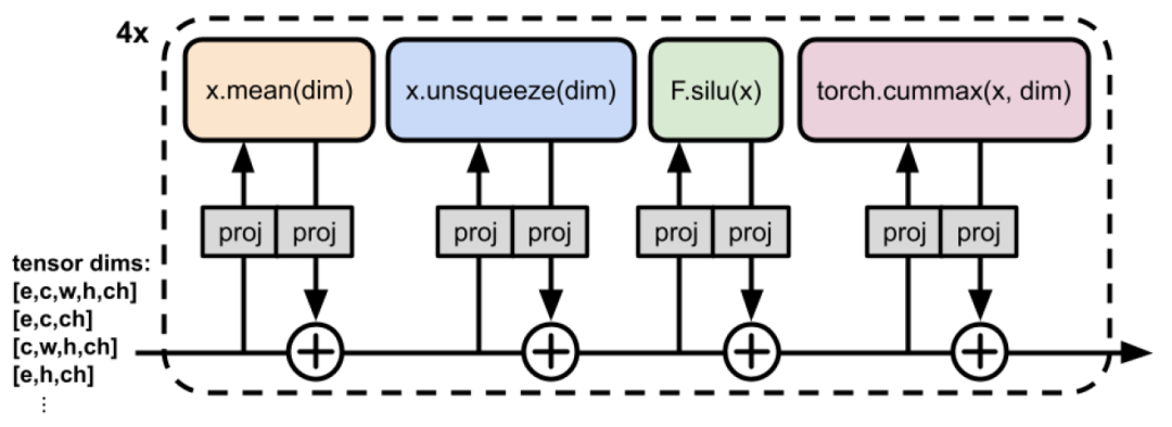- Multitensor Communication Layer:允许不同形状的张量交换信息。通过“广播(Broadcasting)”将低维信息传给高维,通过“求和归约(Sum Reduction)”将高维信息压缩回低维。