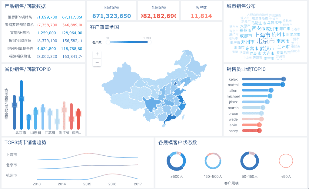 第二个常见场景,是销售和运营分析。销售团队关心目标完成率、客户结构、区域表现、产品表现,运营团队关心流量、转化、留存、活动效果。这些数据本身变化快、维度多,如果还靠手工整理,不仅慢,而且很难持续。数据可视化可以把这些动态指标稳定地展示出来,帮助团队更快做复盘和调整。很多时候,业务并不是看不到问题,而是问题藏在大量数字里,表达方式不对,结果大家反应不过来。