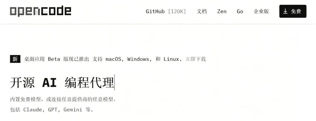 安装后,在终端输入opencode即可启动。