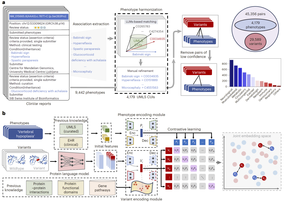 基于这一问题,研究人员提出:是否可以构建一个统一模型,直接从突变预测其具体临床表型,而不仅仅是致病性判断。
