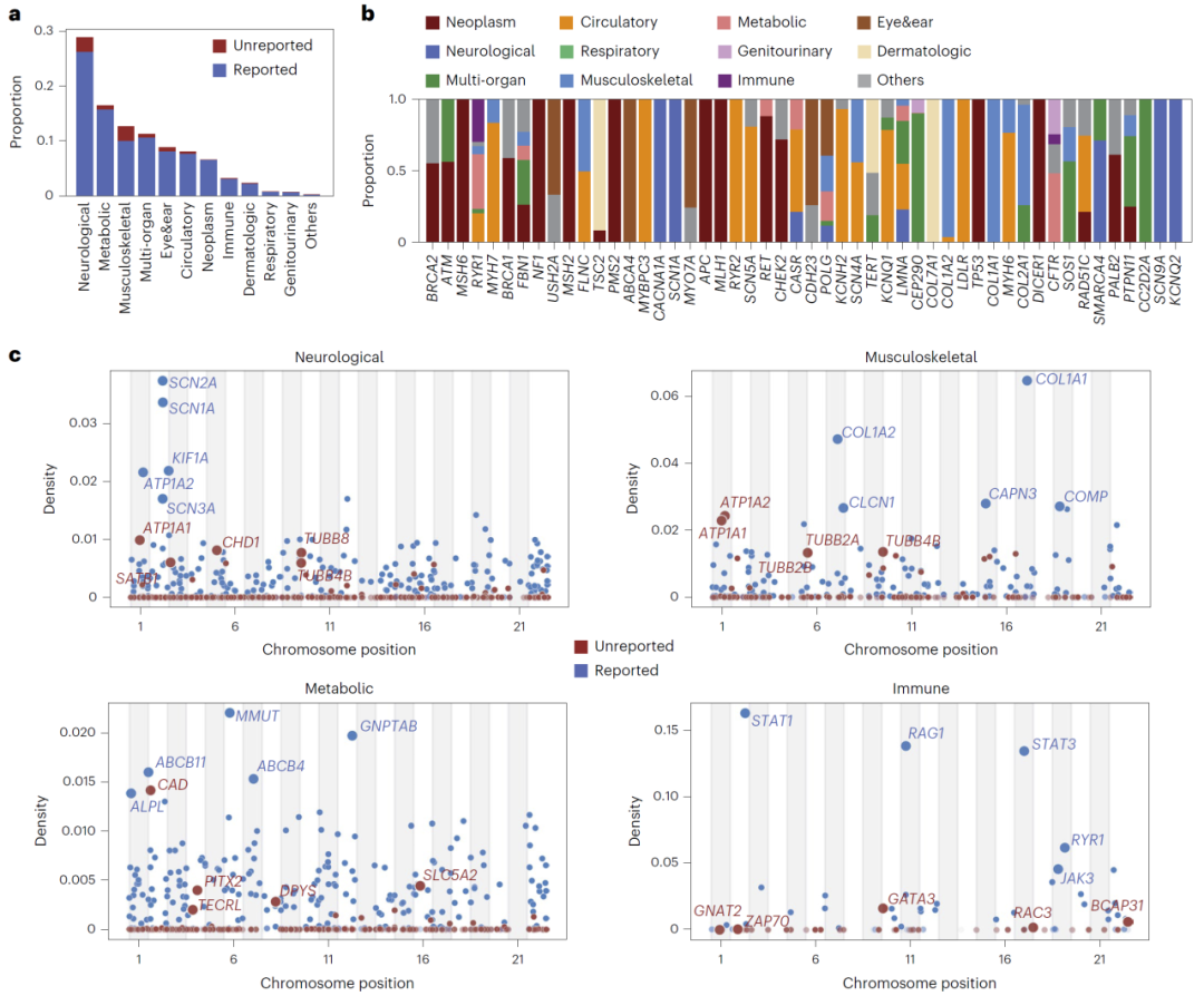 研究人员进一步对超过500万个潜在致病突变进行预测,构建了一个系统性资源库。分析显示,这些突变广泛分布于不同疾病类别,并揭示了大量此前未被记录的基因–表型关系。