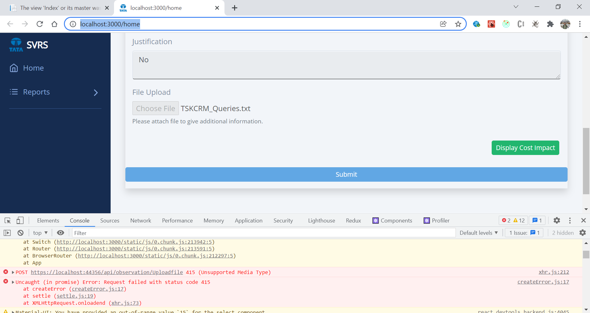 }我试图上传文件,并将其拿到我的后端,但我得到了这个错误。这个错误意味着什么?我如何解决这个问题?