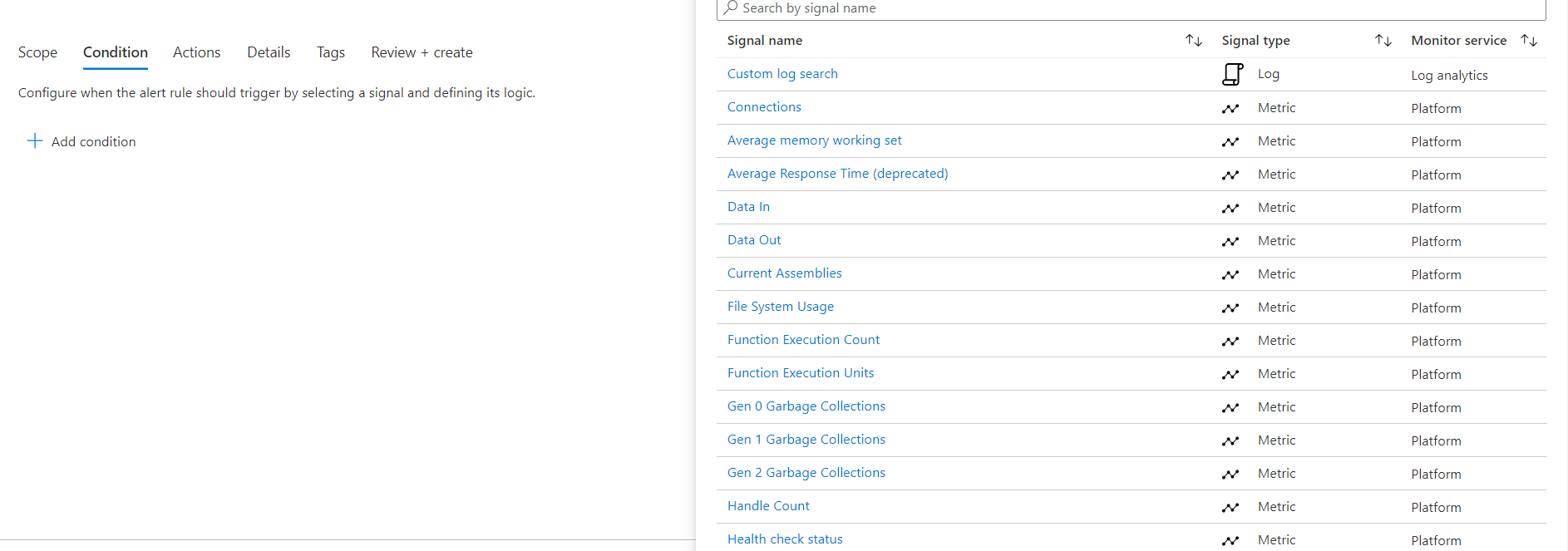 我试图配置一个警报,当一个工作流在逻辑应用标准fails.However,我找不到任何开箱即用的度量/信号类似于"RunsFailed“,可供逻辑应用程序消费。