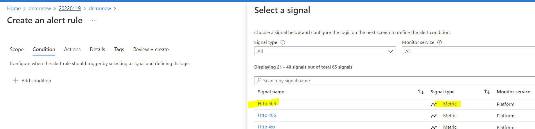 使用工作流type('Stateful'),的Logic标准模型/类型的Http 404更类似于逻辑应用程序消耗模型/类型的度量标准'Runs‘。已经根据警报规则设置创建了警报并进行了单元测试,两者的工作原理相似。