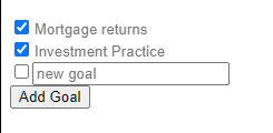因此,如果我正确理解了您的意思,您希望有一个待办事项列表,点击Add目标按钮将添加一个输入框,这样用户就可以在其中输入,通过单击保存按钮,您需要呈现一个包含已保存的待办事项的列表,以及复选框和标签。