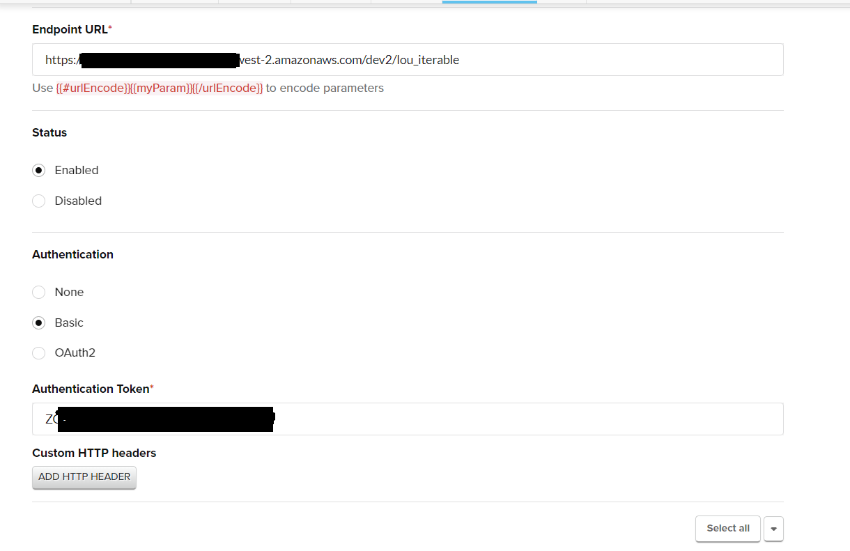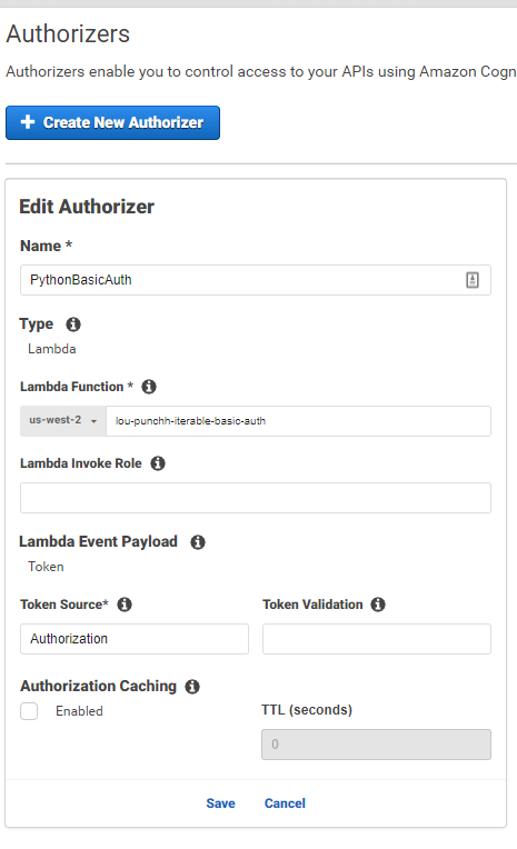 注意,这两个服务器的有效载荷表示不同。Punchhweb钩子管理页面使用密码和用户名,而Iterableweb钩子管理页只使用base64编码的令牌。谢谢Lambda授权程序代码