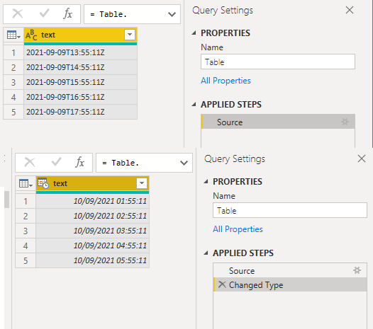 如果不想转换为本地时间,则通过提取文本的前19个字符从文本中删除Z,然后更改数据类型。