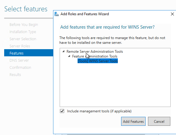 中的特性查找-> Wins Server ->添加功能->继续->下一步