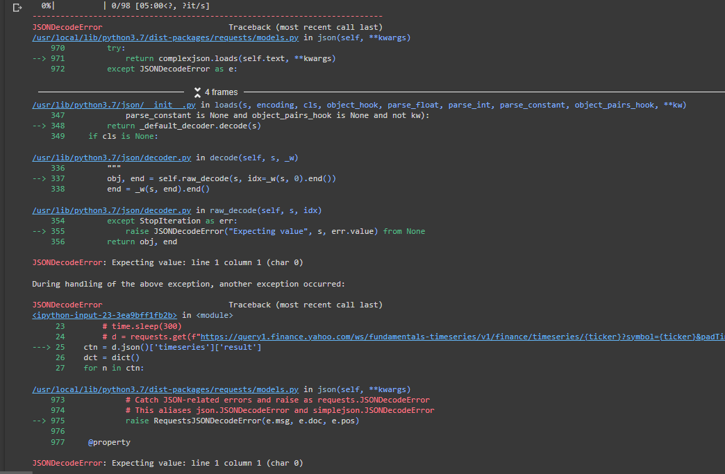 JSONDecodeError: Expecting value: line 1 column 1 (char 0)--我已经检查了所有类似的问题,但都是徒劳的,这就是为什么我再次问这个问题的原因。