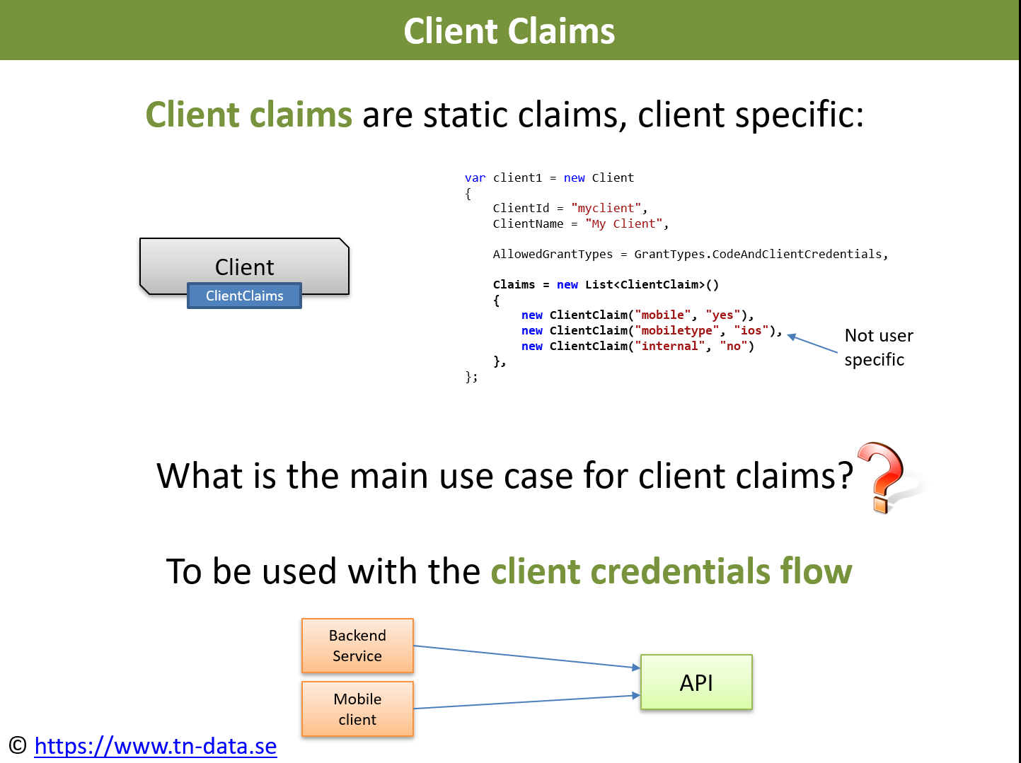 要在API中区分客户端,可以在ClientClaims中使用IdentityServer。