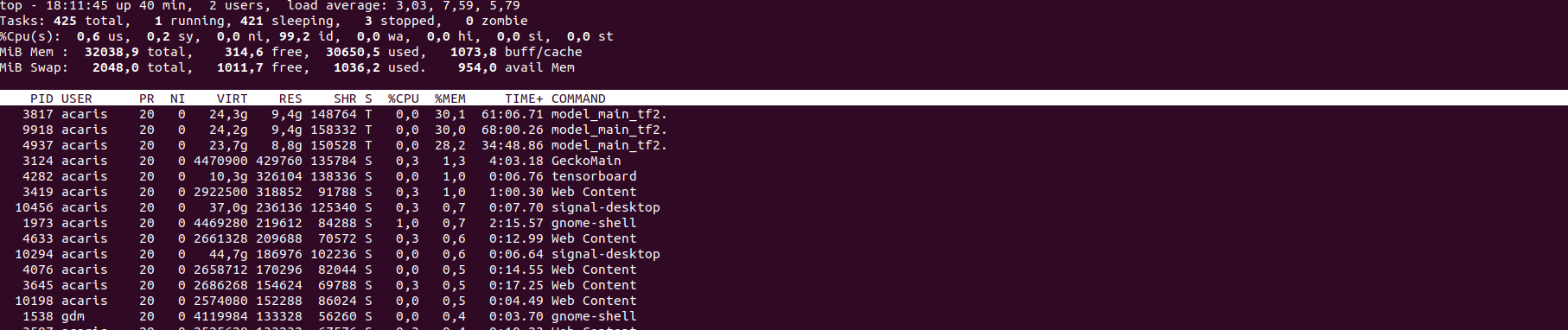 即使在我停止了旧的脚本(model_main_tf2)之后,这些旧的脚本仍然消耗了大量内存(与model_main_tf2同名),如下图所示。