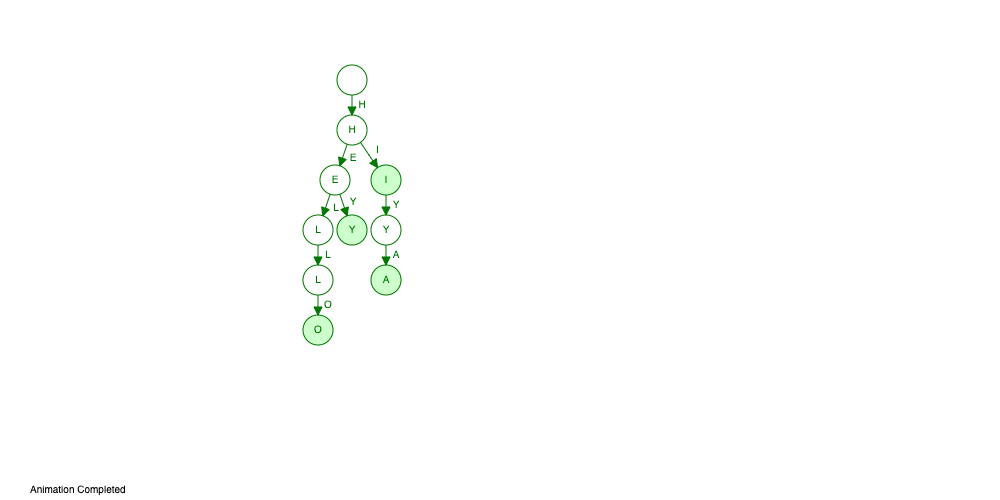 {'h': {'i': {'y': {'a': {}}}, 'e': {'y': {}, 'l': {'l': {'o': {}}}}}}这代表了如下所示的一棵树: