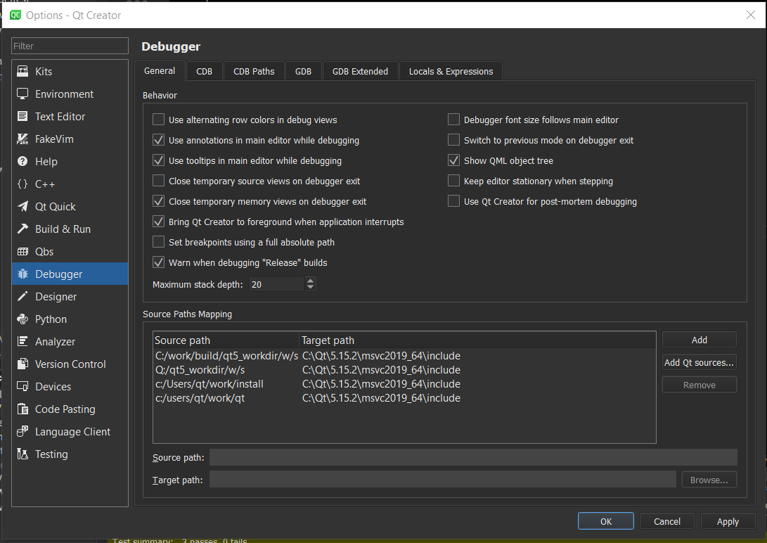 转到MaintenanceTool并检查是否选择了Qt Creator 4.15.2 CDB Debugger Support和Debugging Tools for Windows。
