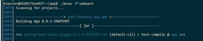 然后我跑了。/mvnw -P-webpack,也是在不同的终端上开始的纱线。