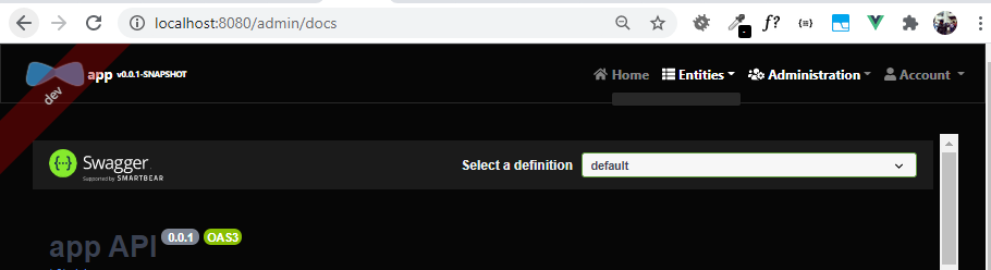 否则,如果您通过后端端口(8080)访问它,您将看到最新成功构建的结果,在您的示例中,这是在项目生成时还没有实体的时候。