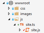 看起来,site.js根本没有生成,因为在site.ts中是一个错误。