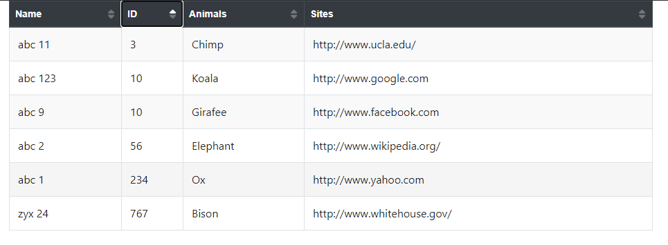 我想在asc和desc order.Basically中对表进行排序,当我单击fa-排序-asc时,应该突出显示,而fa-排序-desc应该是灰色的,反之亦然。请帮助我如何在引导4实现这一点。有例子,但当ASC排序完成时,向下箭头是缺少的。