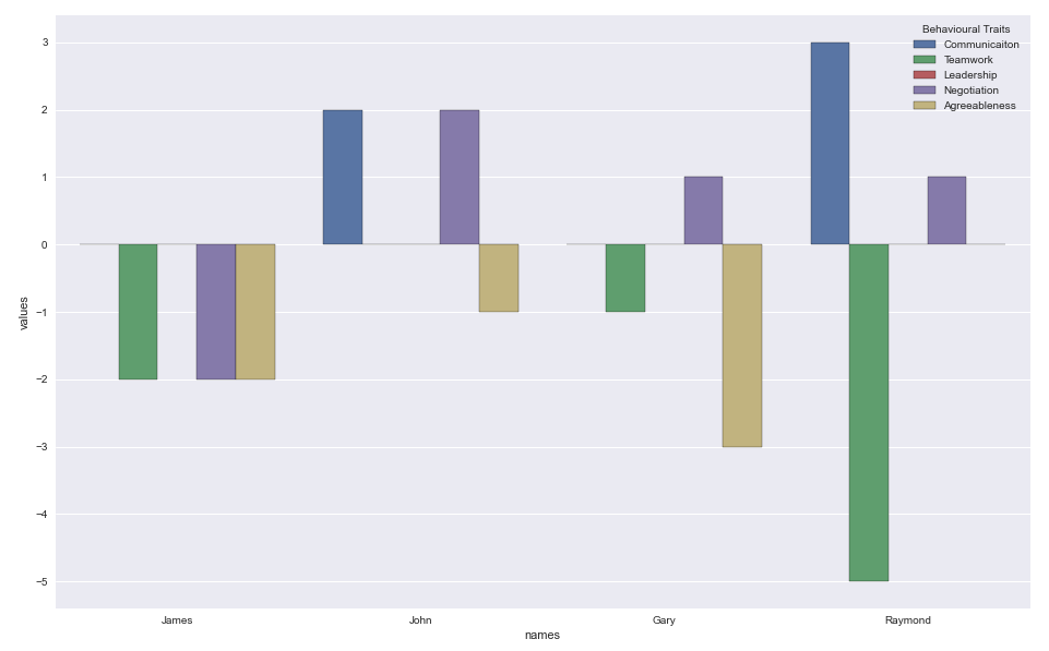 btraits = {'Behavioural Traits': ['Communicaiton', 'Teamwork', 'Leadership', 'Negotiation', 'Agreeableness'],