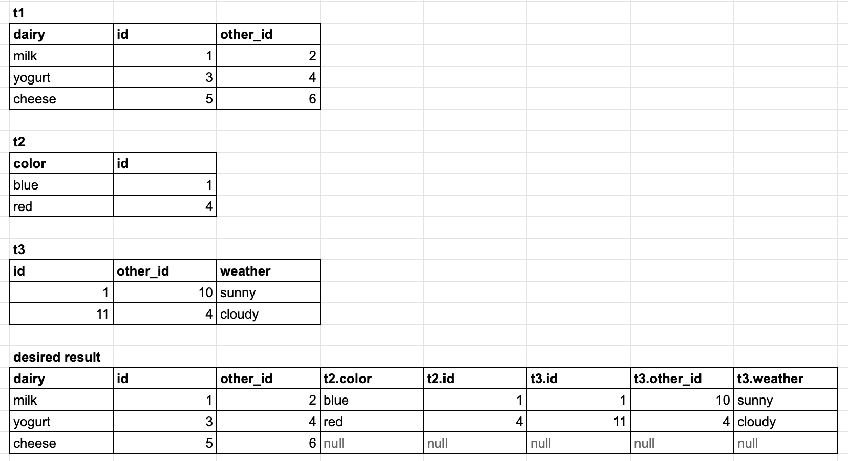 left join t2 yogurt on t1.other_id = yogurt.id