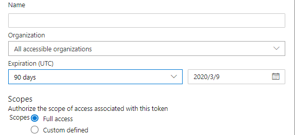 如果PAT确认它尚未过期,您可以尝试重新创建一个新PAT,选择All accessible organizations和Full access作用域,撤消以前的PAT,并查看新PAT是否可用。