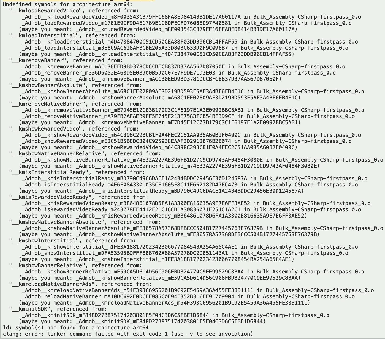 在我的团结项目中,我想使用谷歌移动广告,当我为Xcode构建它并尝试在设备上启动时,我会得到下一个错误。
