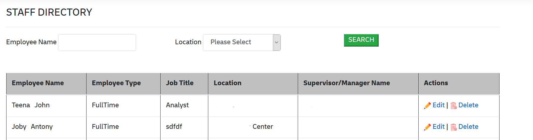 我有一个列表页面与工作人员的细节与编辑和删除链接,像这样。