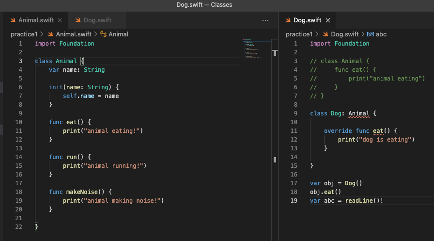 考虑,在Xcode中类似于New -> macOS ->命令行工具。在那里,我们可以有多个文件,我们可以在不同的文件中定义多个类,并且仍然可以在main.swift文件中继承或创建这些类的对象。