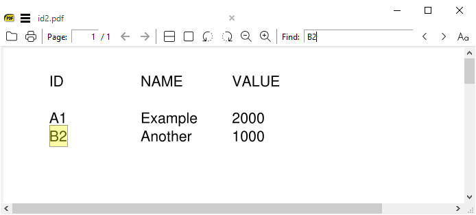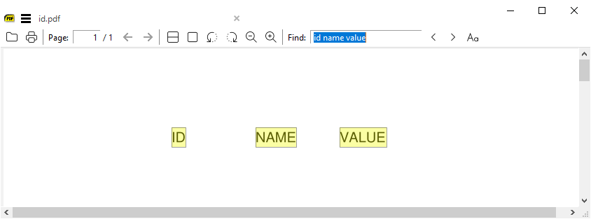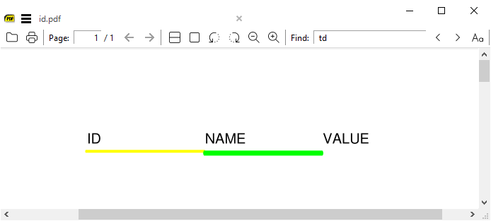 BT 50 800 Td (ID) Tj 100 0 Td (NAME) Tj 100 0 Td (VALUE) Tj ET
