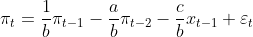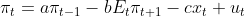 其中,π是通货膨胀率,x是衡量产出缺口的指标(= GDP的周期性成分,使用过滤器)。模型π和x的解释变量是可观测的。