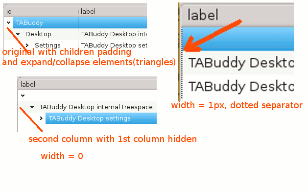 id和label列的原始表id列的表。宽度为1 1px。虚线分隔符很难看。id列的表。宽度为0px。现在第二列有了重新格式化的元素。PS i可以成功地在运行时用鼠标隐藏第一列(没有虚线分隔符和第二列看起来一样)。但这是如何通过代码实现的呢?我依赖于阅读JFace源代码,但没有找到任何有用的公共方法。