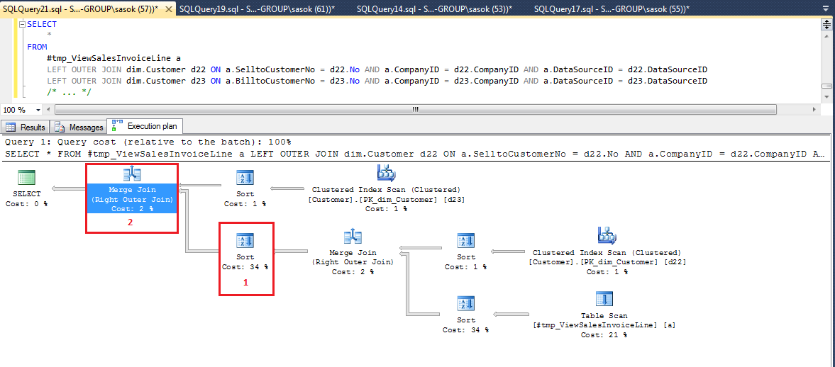 下面是SQL 2012和SQL 2014中查询执行计划(左上角操作符)的示例: