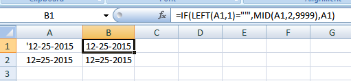 =IF(LEFT(A1,1)="'",MID(A1,2,9999),A1)