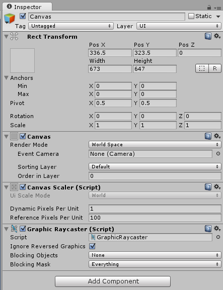 我如何简单地做一个静态的菜单,像一个2D的表面,没有移动的虚拟现实和用户可以使用按钮按下和缪斯点击耳机?这种做UI和画布的方式需要什么设置?有两个附件,显示我当前的设置.