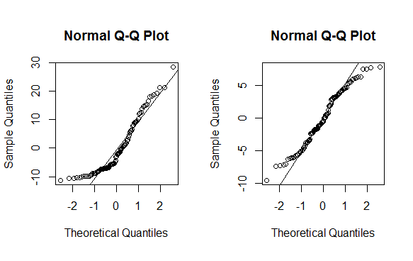 qqnorm(mnew$residuals); qqline(mnew$residuals)