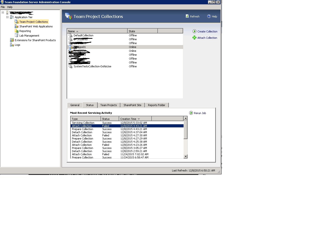 [Info @11:50:21.425] [2015-12-08 09:43:55Z][Informational] Microsoft.TeamFoundation.Framework.Server.CollectionServicingException: KB2278944CollectionInstall.sql Line 1587 Error: Invalid column name 'System.AreaID'.