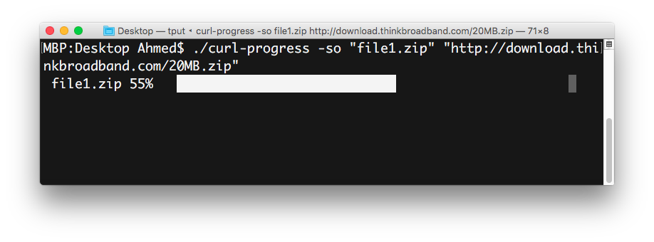 $ ./curl-progress -so "file1.zip" "http://download.thinkbroadband.com/20MB.zip"这是输出: