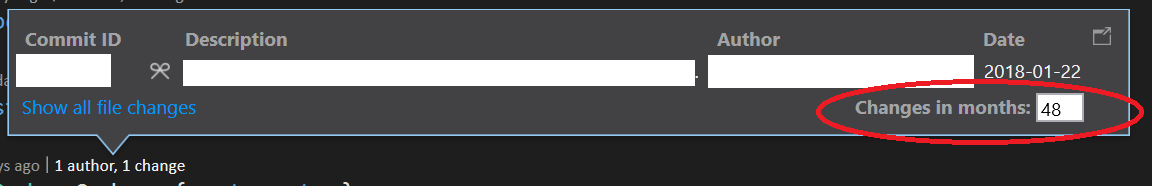 在2017年,我遇到了同样的问题。解决办法是更改“几个月内的变化”字段。如果您单击"0作者,0更改“链接,将出现一个弹出。它的右下角有一个字段,你可以调整。我把它从12个月改为48个月。更改自动应用于整个解决方案。