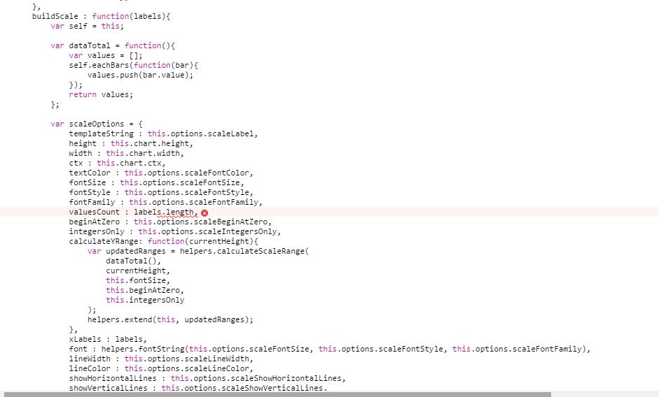 barChart.Bar(barChartData, barChartOptions);更新--我将chart.js的最小版本更改为完整的版本,这样我就可以看到它到底在哪里出错。