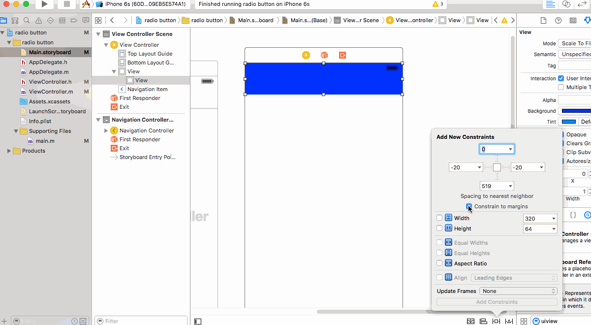 我在我的视图控制器顶部有一个视图,它的高度是64。