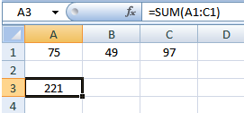 =SUM(A1:C1)而不是你的公式。