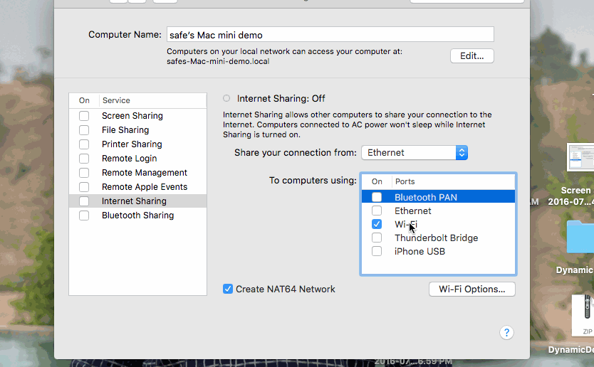 12)现在你的mac mini正在成为热点,并使用IPv6 NAT64网络。