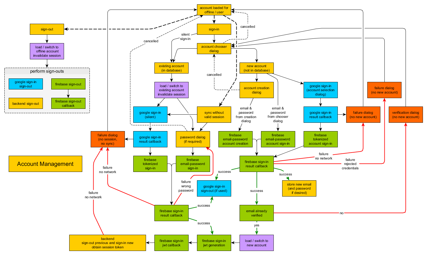 目前,我的解决方案是不允许用户进入登录状态,除非Google登录+ Firebase能够正确登录,这意味着我不会从本地数据库为该用户加载数据,用户在再次上网之前不能使用他的数据。这太糟了。