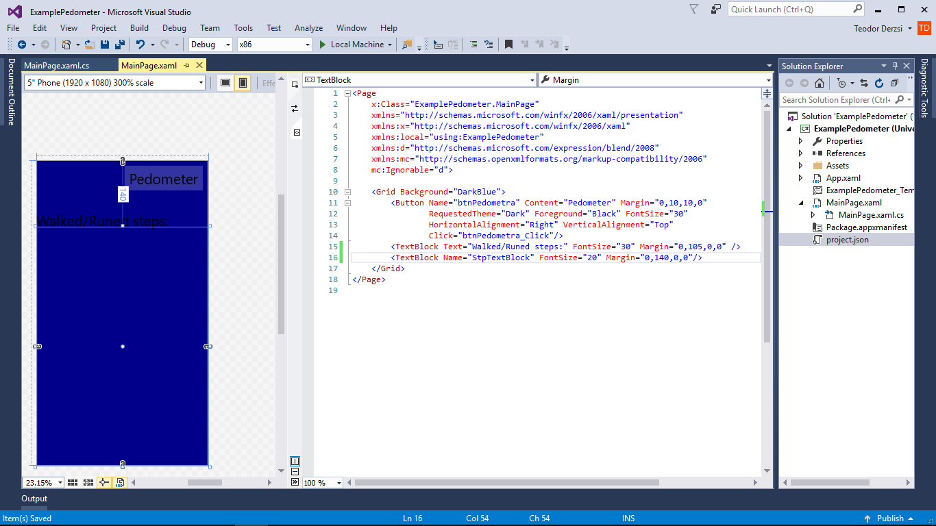 我在XAML TextBlock中有名称StpTextBlock,在按钮中有名称btnPedometra。