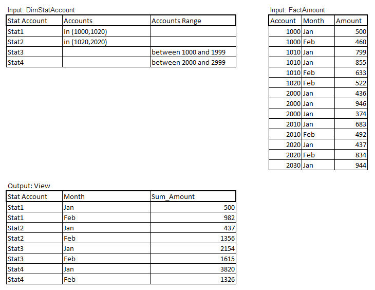 下面是两个表: DimStatAccount和FactAmount,下面是预期的视图