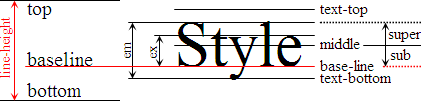 默认情况下,浏览器将vertical-align属性计算为baseline,这是默认行为。以下图像显示基线位于文本上的位置: