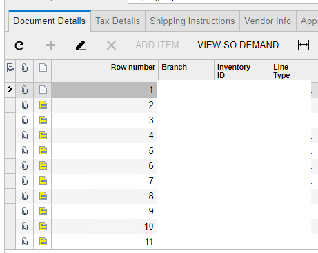 对于案例1,请考虑向页po301000添加行号,选项卡文档详细信息。选项卡文档详细信息中的网格绑定到DataMember事务,在屏幕截图片段中可以看到: